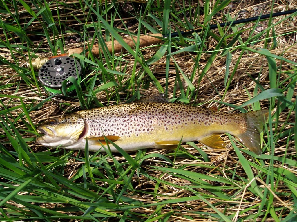 The rod arched into a perfect bow, countering the thrusts and headshakes of the trout, finally overcoming both his strength and that of the rushing river. In the net he measured a respectable 19 inches, broad and deep in the chest.
