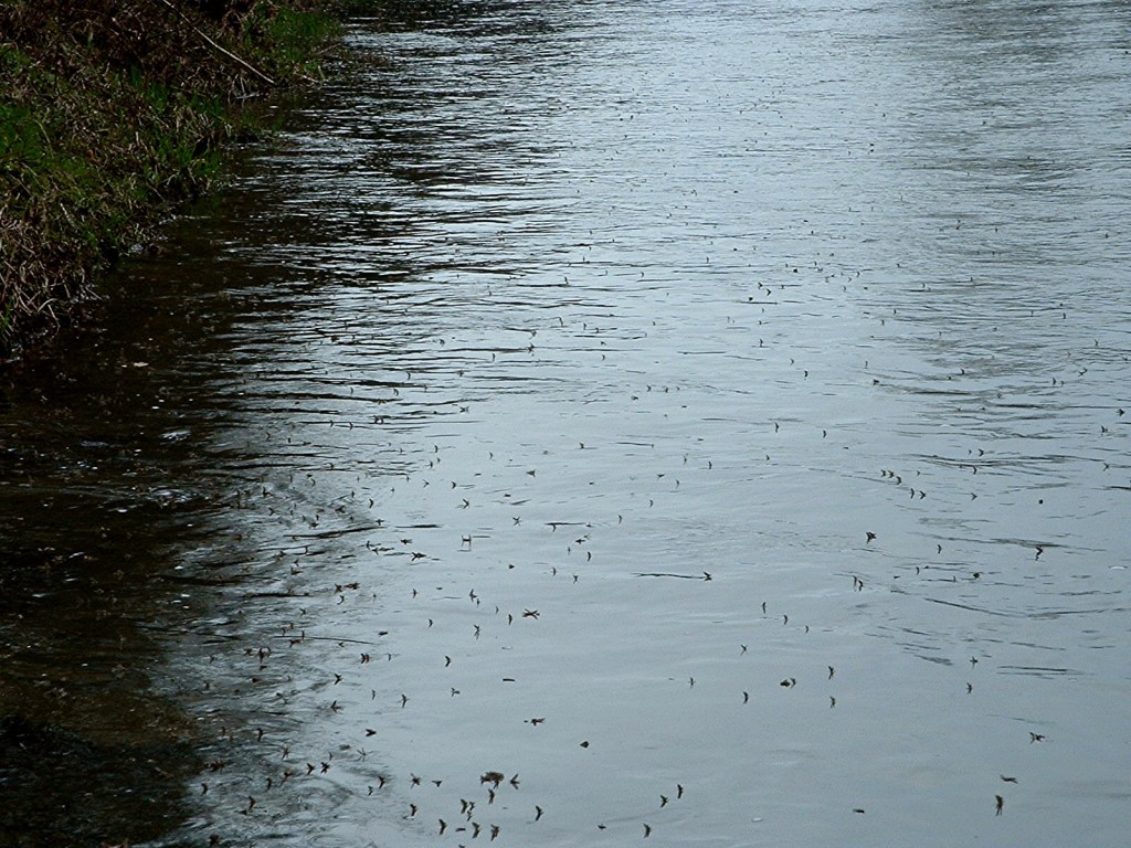 I saw a rise at a distance, then another in a different location, but the black clouds overhead made me think that those splashes might have been rain drops or sleet. I saw no flies on the water, but then one of those splashes repeated and I was certain it was a trout. I have not seen a hatch like the one that began to unfold in a decade or more. Red Quills and Hendricksons by the thousands came bobbing down the current for several hours. There were so many naturals on the water, all wiggling and fluttering as they tried to fly off, that I expected every trout in the river to be gorging, but that wasn’t the case.