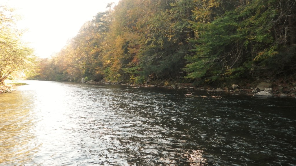 We are three weeks into October. The winds and rains have inevitably battered our formerly glorious autumn colors, and our Catskill brown trout are more involved with spawning than with the pursuit of the fly, yet I was drawn to Roscoe on Monday afternoon, cane rod in hand, to pay homage to the past, and the words of a fellow gentleman angler. Though the pig pen itself has been replaced by a large grassy field, I found the relentless currents still “bubbling down between the stones”, meandering between sunlight and shadow on down into the boulder shrouded heart of the Pig Pen Pool.