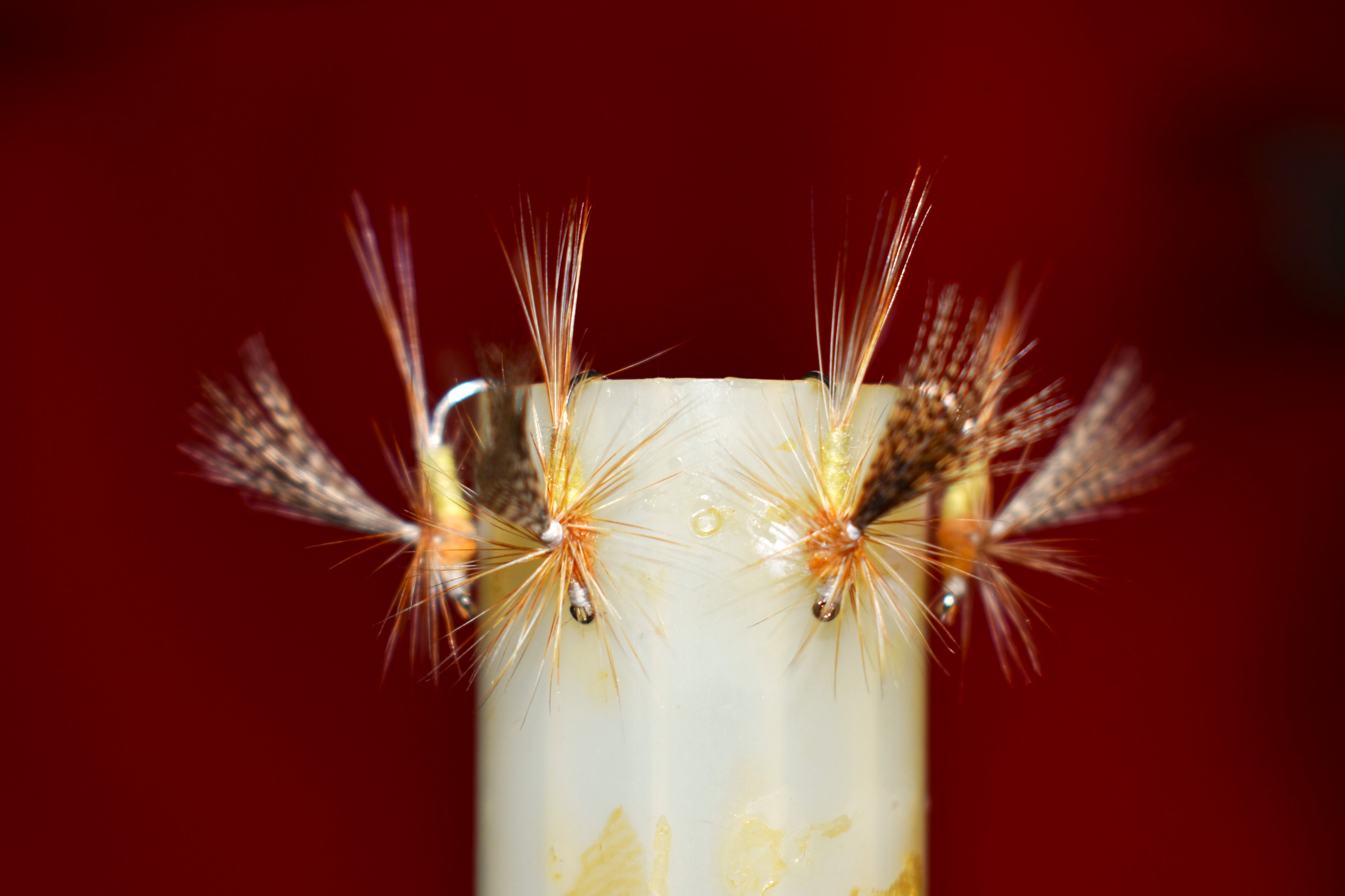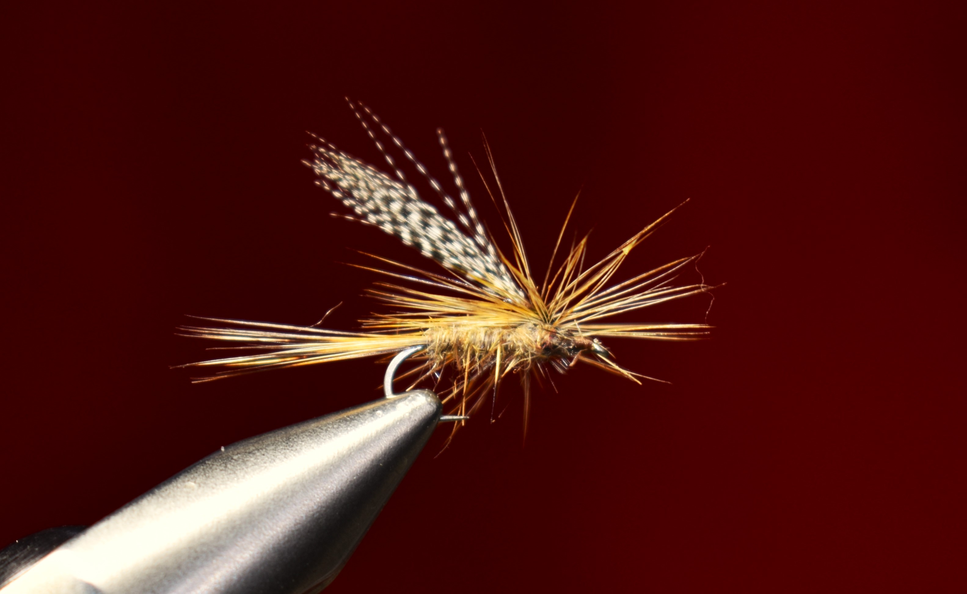 Our second fly for the evening will be Art Flick’s Dun Variant, a pattern that will necessitate my picking a few feathers from my Rhode Island Red rooster cape, stripping the barbs, and soaking the quills after dinner, so they will be ready to go. I have the perfect dark dun hackle close at hand. It is a lovely old fly to fish when isonychia mayflies are on the water.