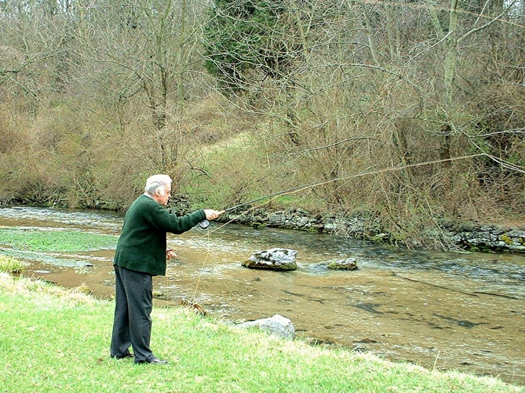 Ernest Schwiebert casting on Big Spring, Newville, Pennsylvania, April 5, 2003