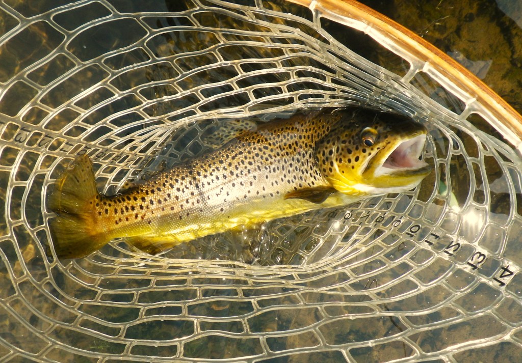 A fine brown trout to close the season, cradled in the net while I snapped a photo. Nineteen inches and…something. A very fine trout indeed!